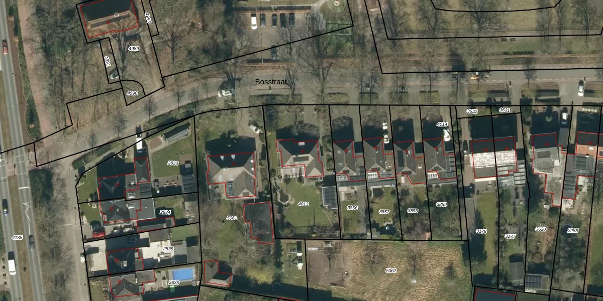 Het perceel waarop Bosstraat 26 staat heeft een oppervlakte van 983 m². Dit is een groot perceel. De perceeloppervlakte wordt geregistreerd door het Kadaster. Gedetailleerde informatie over de maten van dit perceel kunt u vinden in het rapport Kadastrale kaart met maatvoering van Bosstraat 26.