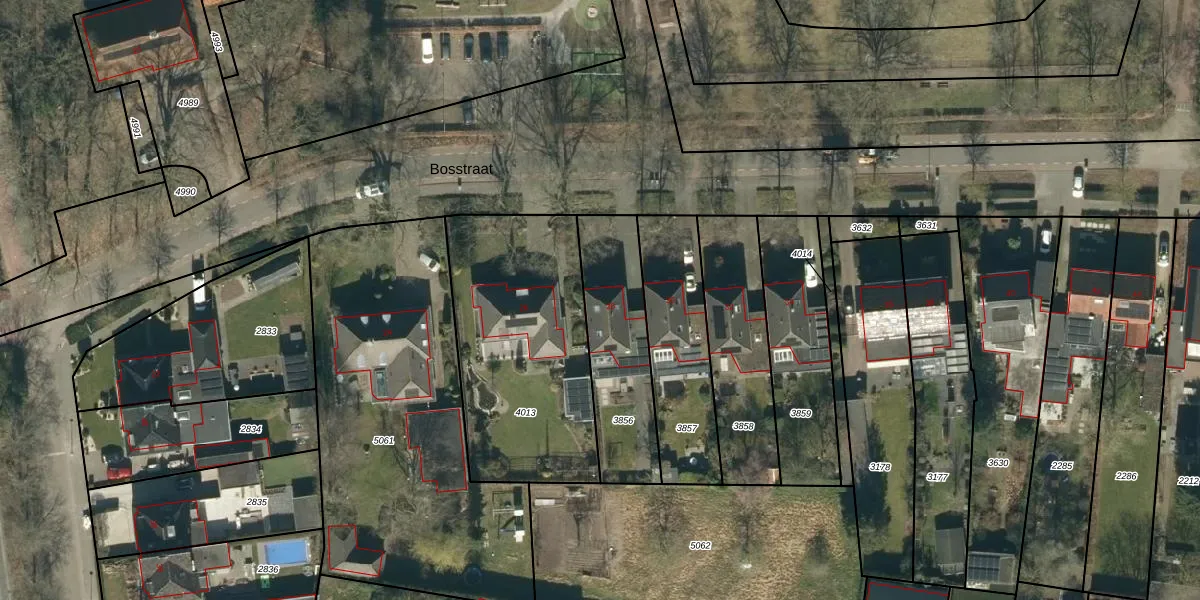Het perceel waarop Bosstraat 28 staat heeft een oppervlakte van 450 m². Dit is een groot perceel. De perceeloppervlakte wordt geregistreerd door het Kadaster. Gedetailleerde informatie over de maten van dit perceel kunt u vinden in het rapport Kadastrale kaart met maatvoering van Bosstraat 28.