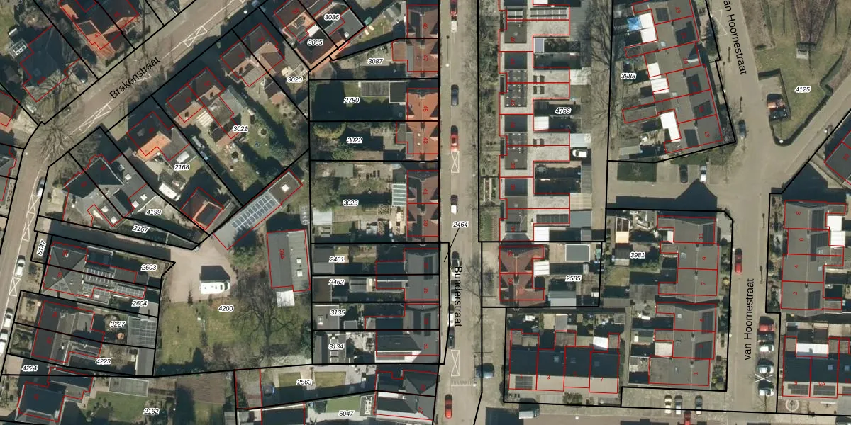 Het perceel waarop Bunderstraat 39 staat heeft een oppervlakte van 572 m². Dit is een groot perceel. De perceeloppervlakte wordt geregistreerd door het Kadaster. Gedetailleerde informatie over de maten van dit perceel kunt u vinden in het rapport Kadastrale kaart met maatvoering van Bunderstraat 39.