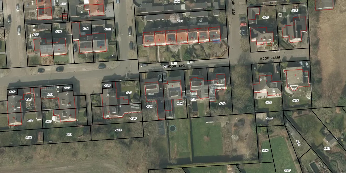 Het perceel waarop Cabotopad 5 staat heeft een oppervlakte van 364 m². Dit is een groot perceel. De perceeloppervlakte wordt geregistreerd door het Kadaster. Gedetailleerde informatie over de maten van dit perceel kunt u vinden in het rapport Kadastrale kaart met maatvoering van Cabotopad 5.