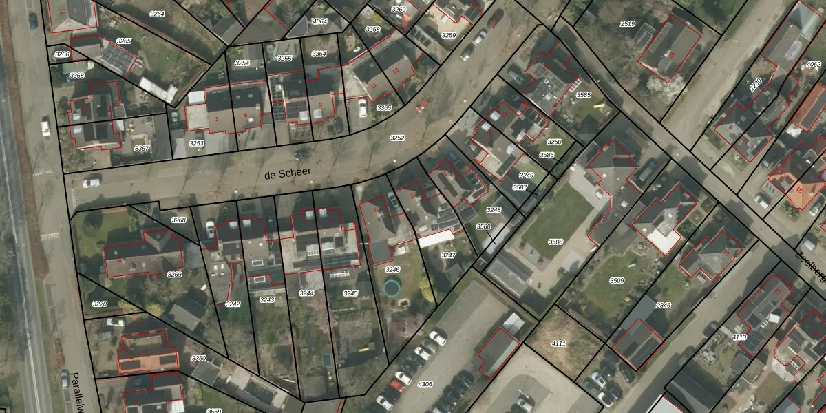 Het perceel waarop de Scheer 12 staat heeft een oppervlakte van 344 m². Dit is een groot perceel. De perceeloppervlakte wordt geregistreerd door het Kadaster. Gedetailleerde informatie over de maten van dit perceel kunt u vinden in het rapport Kadastrale kaart met maatvoering van de Scheer 12.