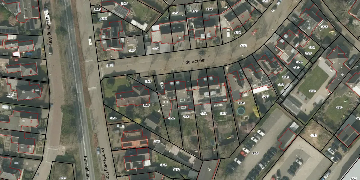 Het perceel waarop de Scheer 4 staat heeft een oppervlakte van 425 m². Dit is een groot perceel. De perceeloppervlakte wordt geregistreerd door het Kadaster. Gedetailleerde informatie over de maten van dit perceel kunt u vinden in het rapport Kadastrale kaart met maatvoering van de Scheer 4.