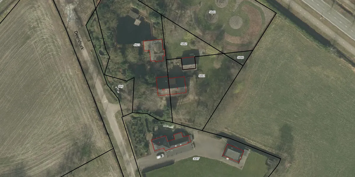 Het perceel waarop Deelshurk 5 staat heeft een oppervlakte van 1197 m². Dit is een zeer groot perceel. De perceeloppervlakte wordt geregistreerd door het Kadaster. Gedetailleerde informatie over de maten van dit perceel kunt u vinden in het rapport Kadastrale kaart met maatvoering van Deelshurk 5.