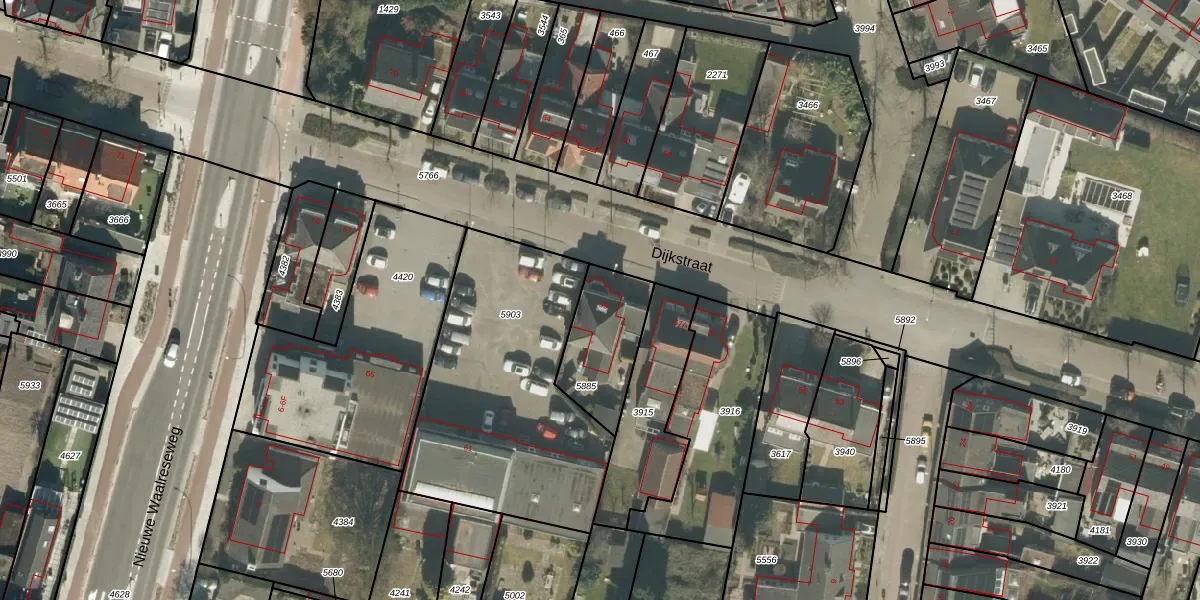 Dijkstraat 59 is gelegen op kadastraal perceel VKW00D5885. Deze kadastrale aanduiding is uniek en wordt gebruikt door het Kadaster om eigendomsrechten en andere zakelijke rechten vast te leggen. Het perceel maakt onderdeel uit van de kadastrale gemeente Valkenswaard.