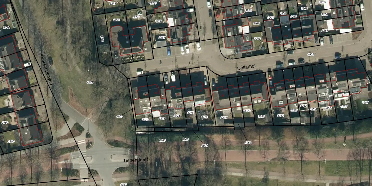 Het perceel waarop Dollarhof 37 staat heeft een oppervlakte van 180 m². Dit is een middelgroot perceel. De perceeloppervlakte wordt geregistreerd door het Kadaster. Gedetailleerde informatie over de maten van dit perceel kunt u vinden in het rapport Kadastrale kaart met maatvoering van Dollarhof 37.