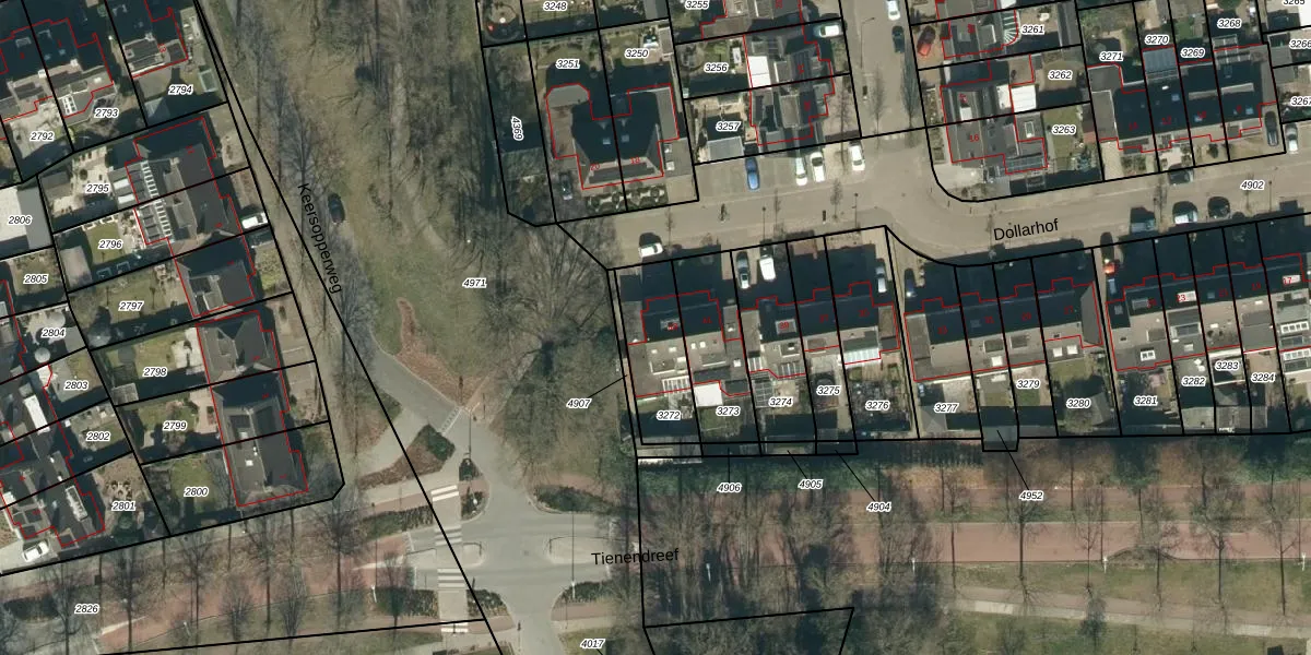 Dollarhof 43 is gelegen op kadastraal perceel VKW00G3272. Deze kadastrale aanduiding is uniek en wordt gebruikt door het Kadaster om eigendomsrechten en andere zakelijke rechten vast te leggen. Het perceel maakt onderdeel uit van de kadastrale gemeente Valkenswaard.
