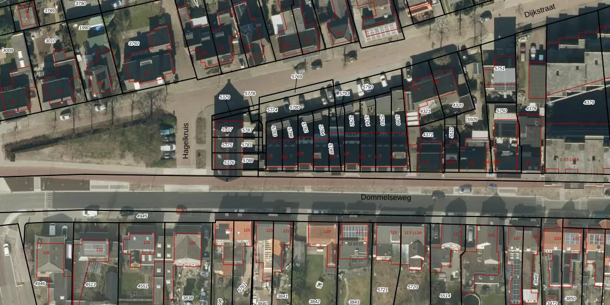 Het perceel waarop Dommelseweg 124 staat heeft een oppervlakte van 97 m². Dit is een klein perceel. De perceeloppervlakte wordt geregistreerd door het Kadaster. Gedetailleerde informatie over de maten van dit perceel kunt u vinden in het rapport Kadastrale kaart met maatvoering van Dommelseweg 124.