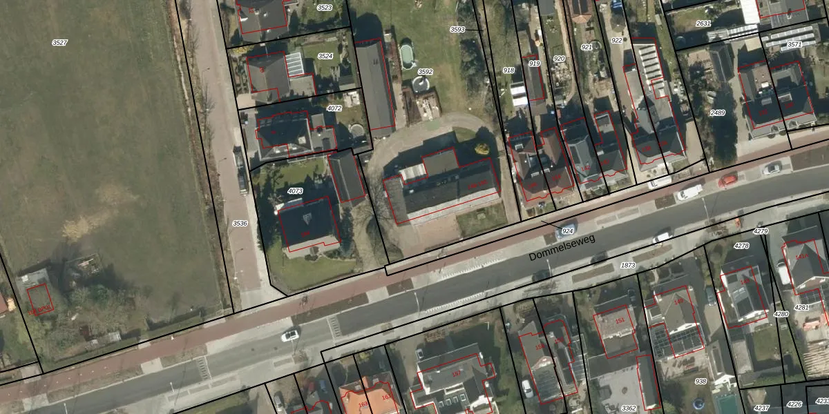 Het perceel waarop Dommelseweg 150 staat heeft een oppervlakte van 2247 m². Dit is een zeer groot perceel. De perceeloppervlakte wordt geregistreerd door het Kadaster. Gedetailleerde informatie over de maten van dit perceel kunt u vinden in het rapport Kadastrale kaart met maatvoering van Dommelseweg 150.