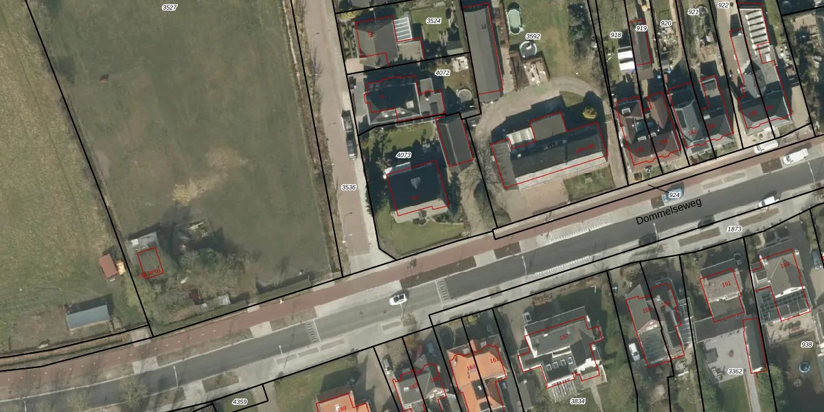 Het perceel waarop Dommelseweg 154 staat heeft een oppervlakte van 843 m². Dit is een groot perceel. De perceeloppervlakte wordt geregistreerd door het Kadaster. Gedetailleerde informatie over de maten van dit perceel kunt u vinden in het rapport Kadastrale kaart met maatvoering van Dommelseweg 154.