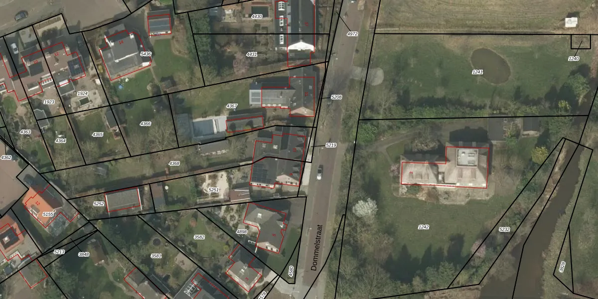 Het perceel waarop Dommelstraat 11 staat heeft een oppervlakte van 879 m². Dit is een groot perceel. De perceeloppervlakte wordt geregistreerd door het Kadaster. Gedetailleerde informatie over de maten van dit perceel kunt u vinden in het rapport Kadastrale kaart met maatvoering van Dommelstraat 11.