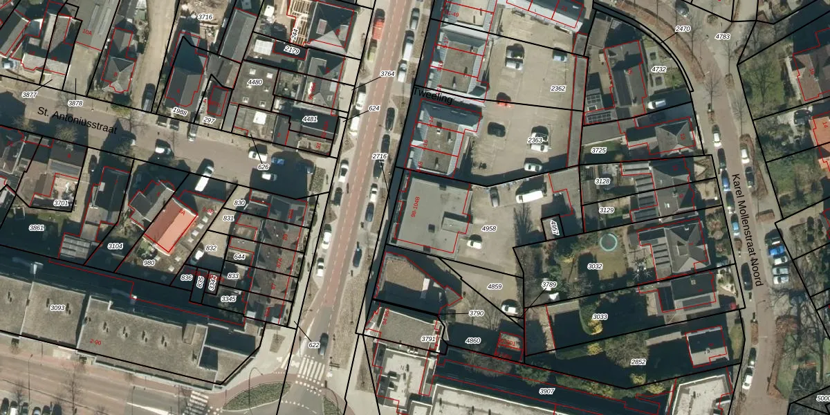 Het perceel waarop Eindhovenseweg 100-A staat heeft een oppervlakte van 808 m². Dit is een groot perceel. De perceeloppervlakte wordt geregistreerd door het Kadaster. Gedetailleerde informatie over de maten van dit perceel kunt u vinden in het rapport Kadastrale kaart met maatvoering van Eindhovenseweg 100-A.