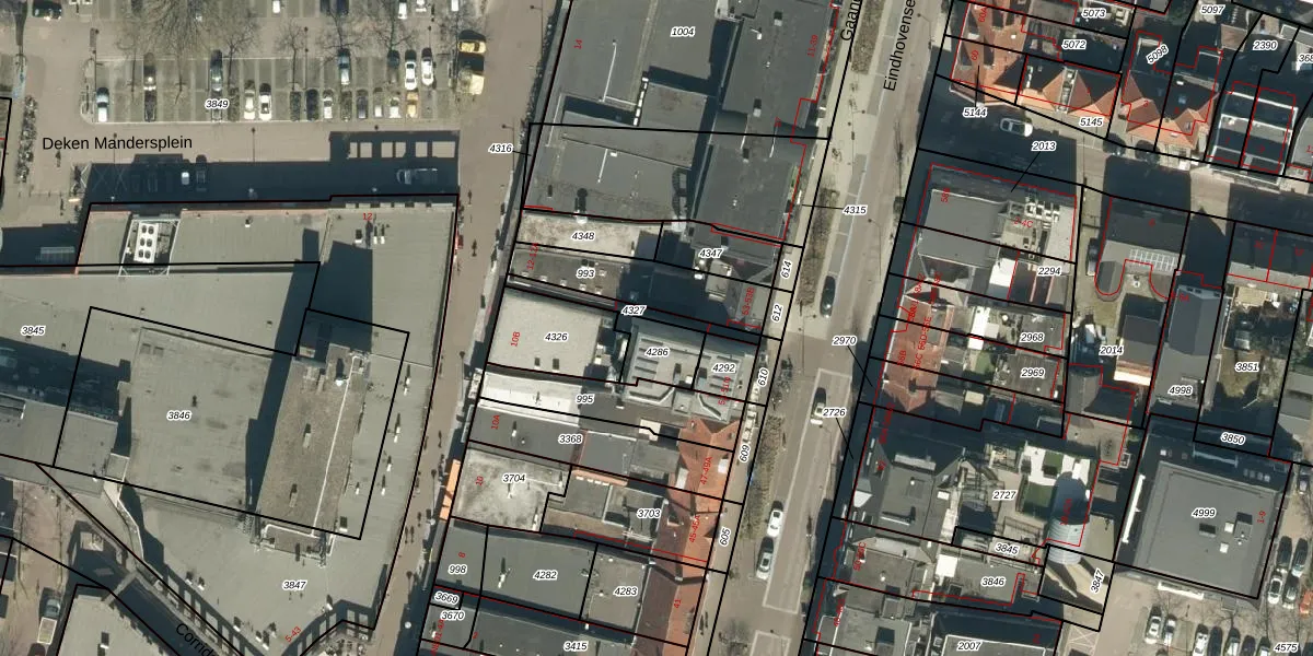 Het perceel waarop het adres ligt is VKW00-E-4286. De afkorting 'VKW00' staat voor kadastrale gemeente Valkenswaard. Het perceel is kleiner dan gemiddeld in Valkenswaard. Het perceel is 110 m² groot, terwijl het gemiddelde ligt op 2206,09 m². De grootste perceeloppervlakte in de kadastrale gemeente is 1,90 km². De kleinste oppervlakte bedraagt 0 m². Er zijn 8 adressen aanwezig op het perceel. In de Basisregistratie Kadaster (BRK) werden de grenzen van het perceel geregistreerd op 29-06-2022.