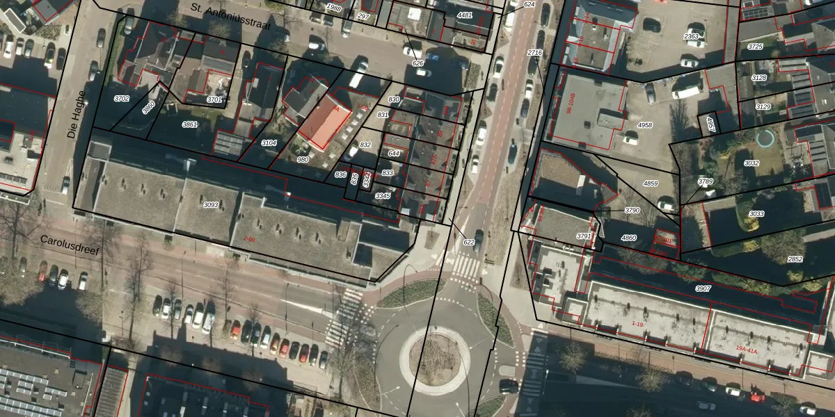 Het adres ligt op het perceel VKW00-E-3345, dat zich in de kadastrale gemeente Valkenswaard bevindt. Het perceel is 119 m² groot. Dat is kleiner dan de gemiddelde perceeloppervlakte in Valkenswaard, dat op 2206,39 m² ligt. Het grootste perceel in de kadastrale gemeente is 1,90 km². Het kleinste perceel heeft een oppervlakte van 0 m². Op het perceel bevinden zich geen andere adressen. De huidige grenzen van het perceel zijn digitaal in de Basisregistratie Kadaster (BRK) geregistreerd op 07-03-2005.