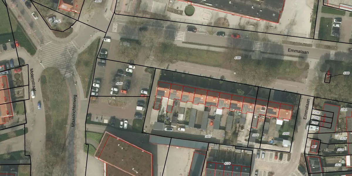 Emmalaan 4 is gelegen op kadastraal perceel VKW00F1657. Deze kadastrale aanduiding is uniek en wordt gebruikt door het Kadaster om eigendomsrechten en andere zakelijke rechten vast te leggen. Het perceel maakt onderdeel uit van de kadastrale gemeente Valkenswaard.
