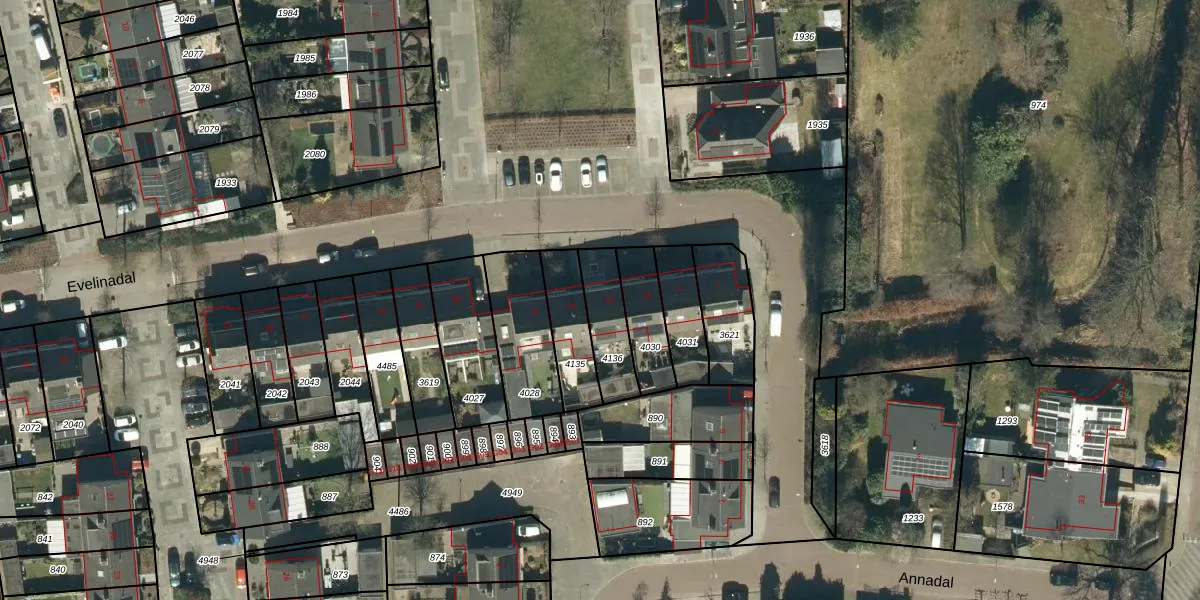 Evelinadal 13 is gelegen op kadastraal perceel VKW00G4136. Deze kadastrale aanduiding is uniek en wordt gebruikt door het Kadaster om eigendomsrechten en andere zakelijke rechten vast te leggen. Het perceel maakt onderdeel uit van de kadastrale gemeente Valkenswaard.