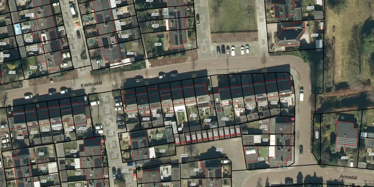 Het perceel waarop Evelinadal 21 staat heeft een oppervlakte van 178 m². Dit is een middelgroot perceel. De perceeloppervlakte wordt geregistreerd door het Kadaster. Gedetailleerde informatie over de maten van dit perceel kunt u vinden in het rapport Kadastrale kaart met maatvoering van Evelinadal 21.
