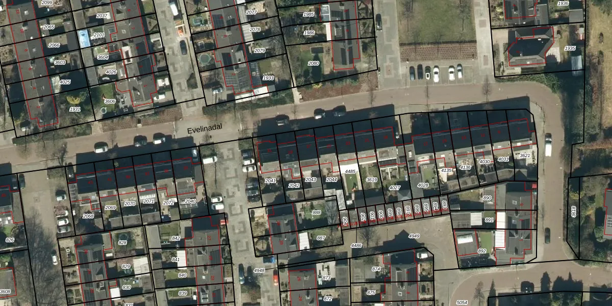 Het perceel waarop Evelinadal 27 staat heeft een oppervlakte van 145 m². Dit is een middelgroot perceel. De perceeloppervlakte wordt geregistreerd door het Kadaster. Gedetailleerde informatie over de maten van dit perceel kunt u vinden in het rapport Kadastrale kaart met maatvoering van Evelinadal 27.