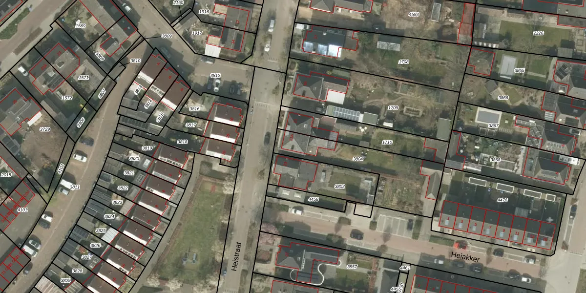 Het perceel waarop Heistraat 21-A staat heeft een oppervlakte van 680 m². Dit is een groot perceel. De perceeloppervlakte wordt geregistreerd door het Kadaster. Gedetailleerde informatie over de maten van dit perceel kunt u vinden in het rapport Kadastrale kaart met maatvoering van Heistraat 21-A.