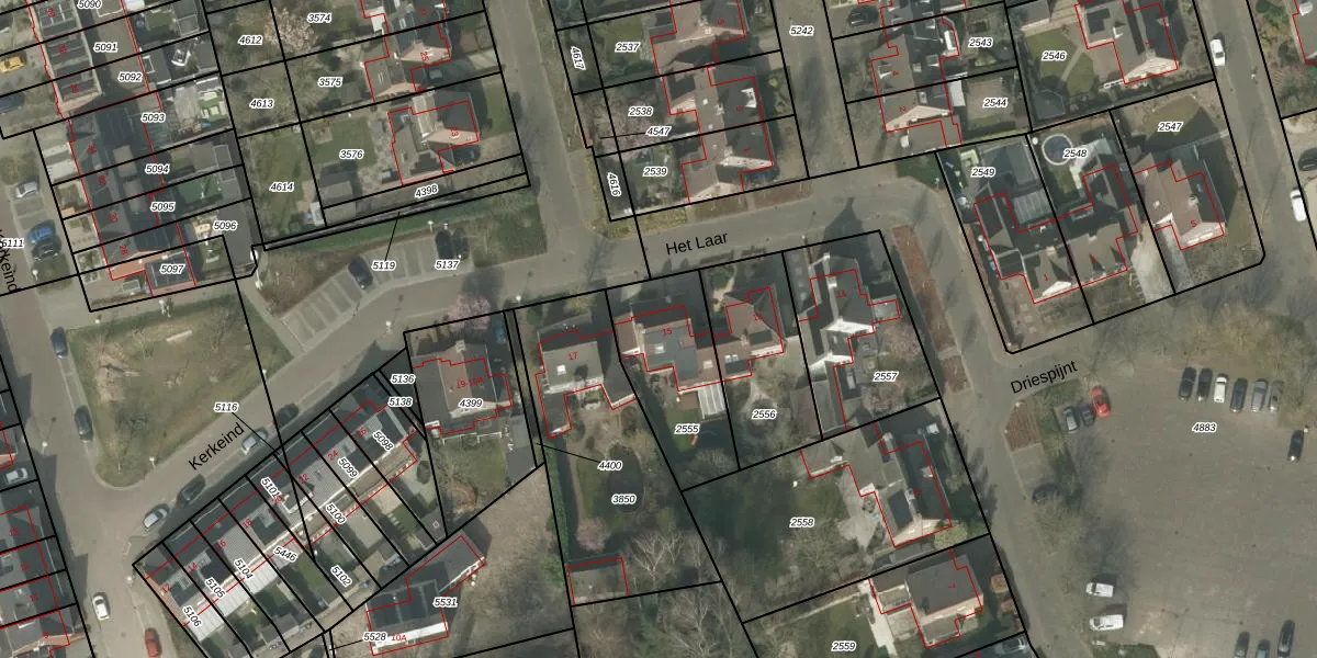 Het Laar 15 is gelegen op kadastraal perceel VKW00G2555. Deze kadastrale aanduiding is uniek en wordt gebruikt door het Kadaster om eigendomsrechten en andere zakelijke rechten vast te leggen. Het perceel maakt onderdeel uit van de kadastrale gemeente Valkenswaard.