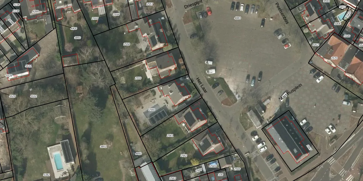 Het Laar 5 is gelegen op kadastraal perceel VKW00G2560. Deze kadastrale aanduiding is uniek en wordt gebruikt door het Kadaster om eigendomsrechten en andere zakelijke rechten vast te leggen. Het perceel maakt onderdeel uit van de kadastrale gemeente Valkenswaard.