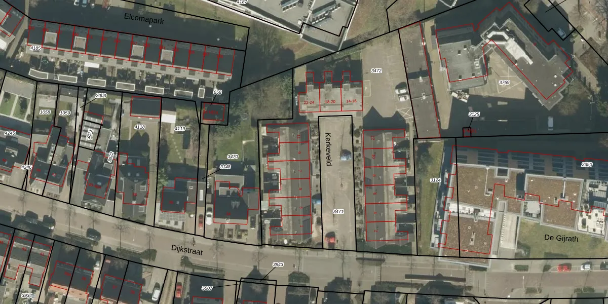 Het perceel waarop Kerkeveld 9 staat heeft een oppervlakte van 2600 m². Dit is een zeer groot perceel. De perceeloppervlakte wordt geregistreerd door het Kadaster. Gedetailleerde informatie over de maten van dit perceel kunt u vinden in het rapport Kadastrale kaart met maatvoering van Kerkeveld 9.