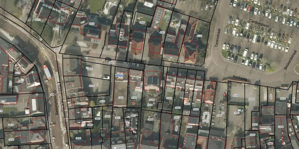 Kerkweg 21 is gelegen op kadastraal perceel VKW00D4568. Deze kadastrale aanduiding is uniek en wordt gebruikt door het Kadaster om eigendomsrechten en andere zakelijke rechten vast te leggen. Het perceel maakt onderdeel uit van de kadastrale gemeente Valkenswaard.