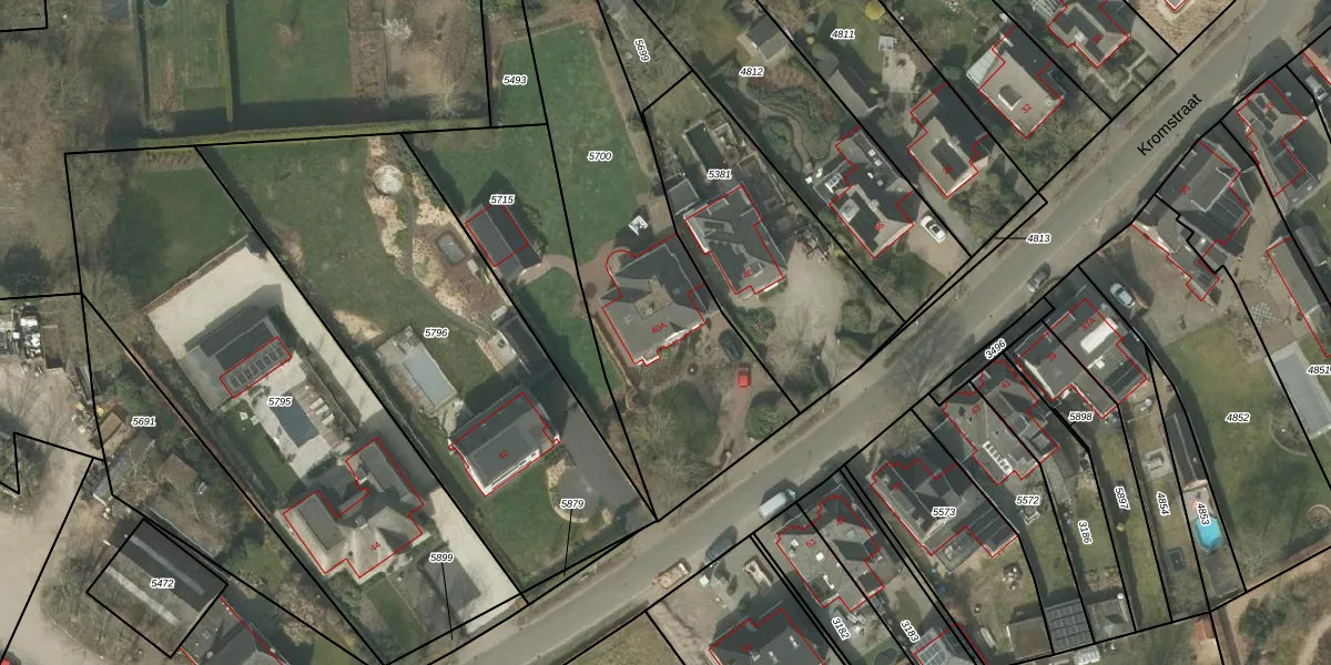 Kromstraat 40-A is gelegen op kadastraal perceel VKW00D5700. Deze kadastrale aanduiding is uniek en wordt gebruikt door het Kadaster om eigendomsrechten en andere zakelijke rechten vast te leggen. Het perceel maakt onderdeel uit van de kadastrale gemeente Valkenswaard.