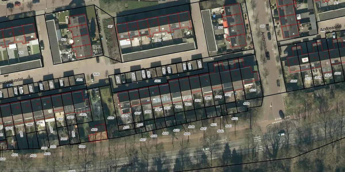 Het perceel waarop Leonardusdal 15 staat heeft een oppervlakte van 119 m². Dit is een middelgroot perceel. De perceeloppervlakte wordt geregistreerd door het Kadaster. Gedetailleerde informatie over de maten van dit perceel kunt u vinden in het rapport Kadastrale kaart met maatvoering van Leonardusdal 15.