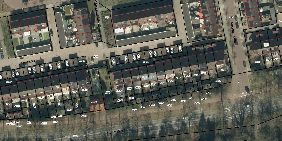 Het perceel waarop Leonardusdal 19 staat heeft een oppervlakte van 117 m². Dit is een middelgroot perceel. De perceeloppervlakte wordt geregistreerd door het Kadaster. Gedetailleerde informatie over de maten van dit perceel kunt u vinden in het rapport Kadastrale kaart met maatvoering van Leonardusdal 19.