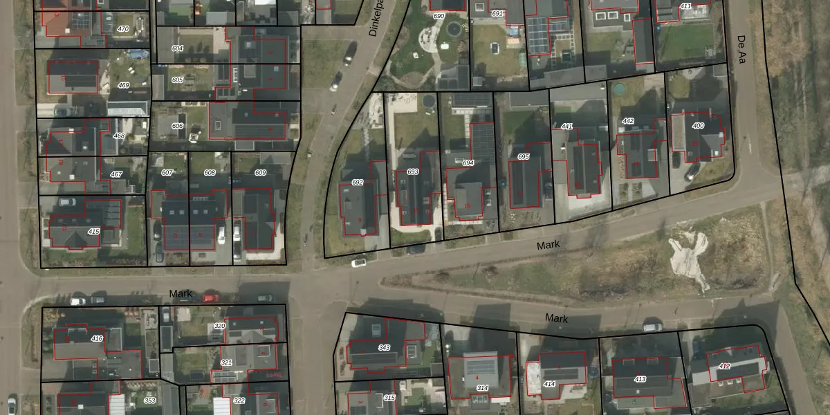 Het perceel waarop Mark 13 staat heeft een oppervlakte van 478 m². Dit is een groot perceel. De perceeloppervlakte wordt geregistreerd door het Kadaster. Gedetailleerde informatie over de maten van dit perceel kunt u vinden in het rapport Kadastrale kaart met maatvoering van Mark 13.