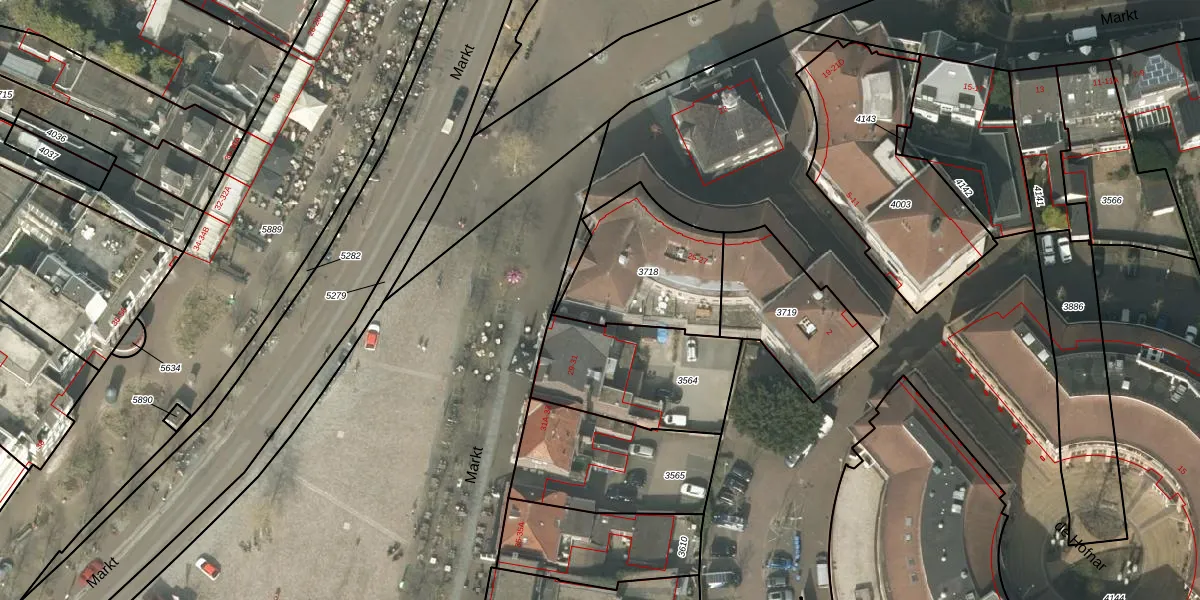 Het perceel waarop Markt 27-E staat heeft een oppervlakte van 481 m². Dit is een groot perceel. De perceeloppervlakte wordt geregistreerd door het Kadaster. Gedetailleerde informatie over de maten van dit perceel kunt u vinden in het rapport Kadastrale kaart met maatvoering van Markt 27-E.