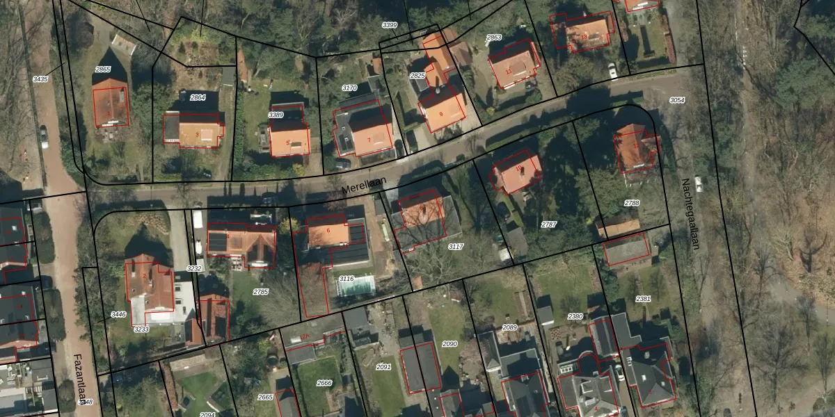 Het perceel waarop Merellaan 8 staat heeft een oppervlakte van 629 m². Dit is een groot perceel. De perceeloppervlakte wordt geregistreerd door het Kadaster. Gedetailleerde informatie over de maten van dit perceel kunt u vinden in het rapport Kadastrale kaart met maatvoering van Merellaan 8.