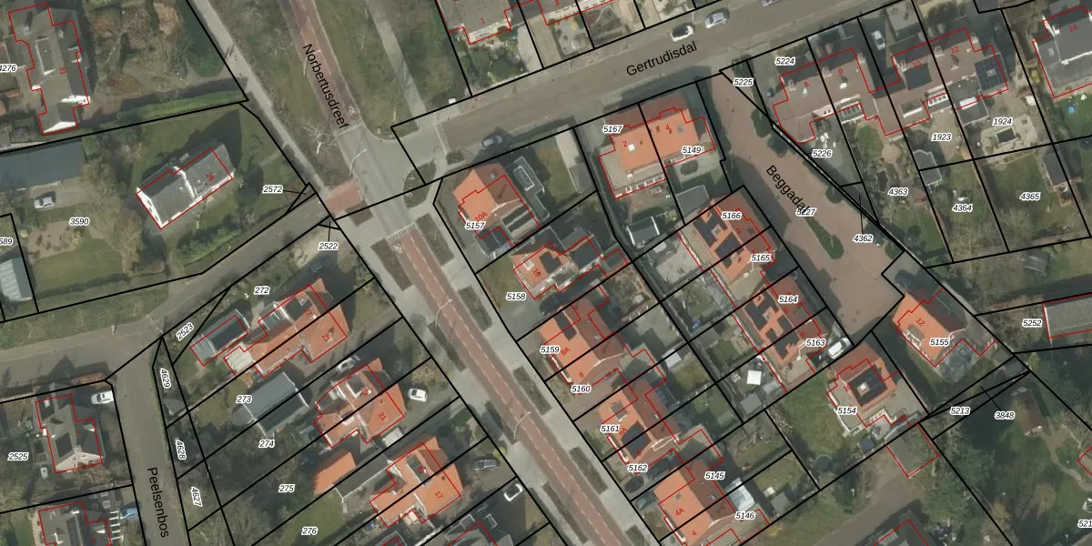 Gebruik de zoekbalk of klik op een perceel voor informatie over de adressen binnen dit perceel.