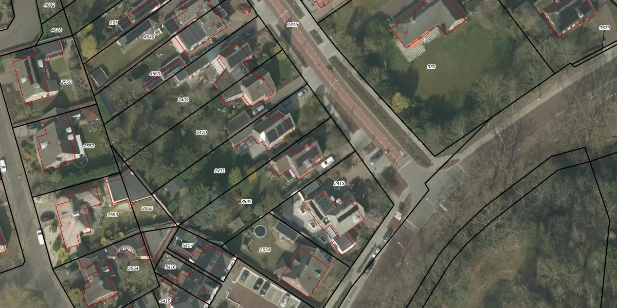 Gebruik de zoekbalk of klik op een perceel voor informatie over de adressen binnen dit perceel.