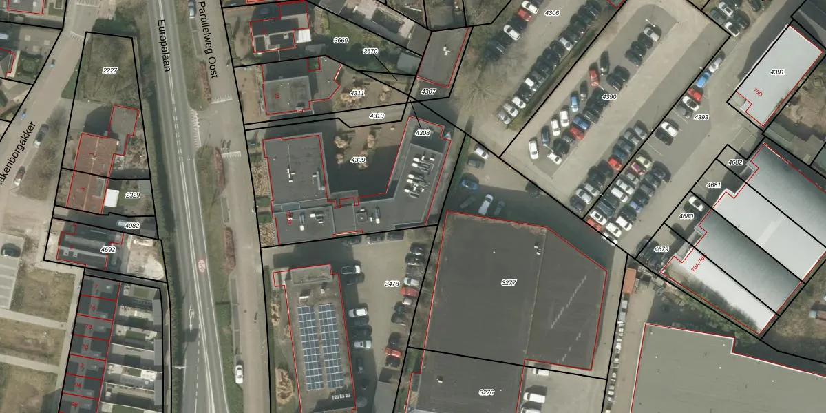 Parallelweg Oost 27-A is gelegen op kadastraal perceel VKW00F4309. Deze kadastrale aanduiding is uniek en wordt gebruikt door het Kadaster om eigendomsrechten en andere zakelijke rechten vast te leggen. Het perceel maakt onderdeel uit van de kadastrale gemeente Valkenswaard.