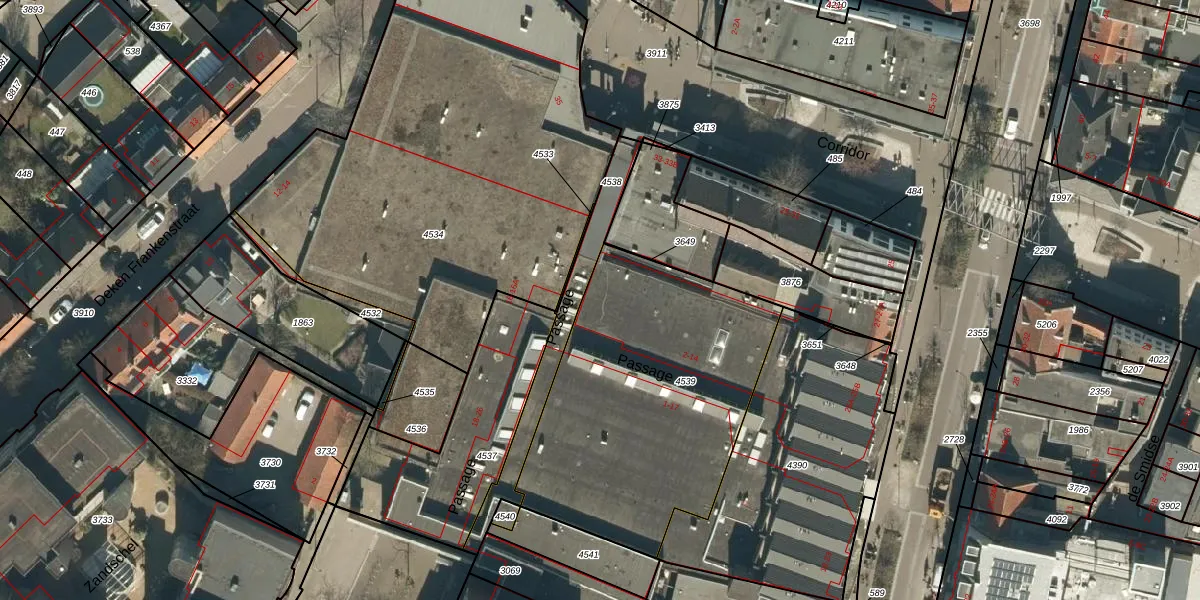 Het perceel waarop Passage 14 staat heeft een oppervlakte van 1417 m². Dit is een zeer groot perceel. De perceeloppervlakte wordt geregistreerd door het Kadaster. Gedetailleerde informatie over de maten van dit perceel kunt u vinden in het rapport Kadastrale kaart met maatvoering van Passage 14.