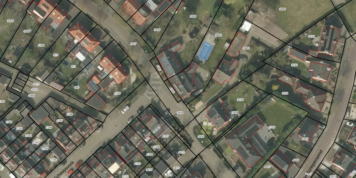 Het perceel waarop Ramstraat 11 staat heeft een oppervlakte van 1476 m². Dit is een zeer groot perceel. De perceeloppervlakte wordt geregistreerd door het Kadaster. Gedetailleerde informatie over de maten van dit perceel kunt u vinden in het rapport Kadastrale kaart met maatvoering van Ramstraat 11.