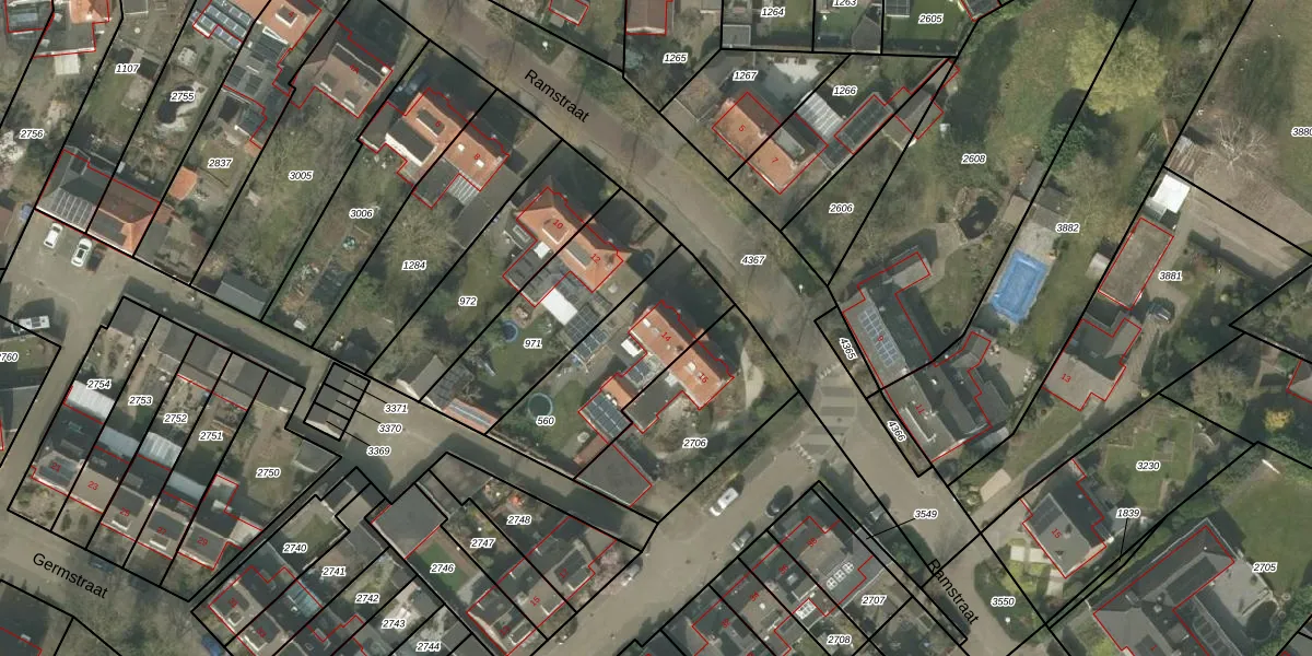 Het perceel waarop Ramstraat 14 staat heeft een oppervlakte van 505 m². Dit is een groot perceel. De perceeloppervlakte wordt geregistreerd door het Kadaster. Gedetailleerde informatie over de maten van dit perceel kunt u vinden in het rapport Kadastrale kaart met maatvoering van Ramstraat 14.
