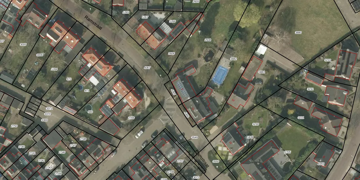 Ramstraat 9 is gelegen op kadastraal perceel VKW00F2608. Deze kadastrale aanduiding is uniek en wordt gebruikt door het Kadaster om eigendomsrechten en andere zakelijke rechten vast te leggen. Het perceel maakt onderdeel uit van de kadastrale gemeente Valkenswaard.
