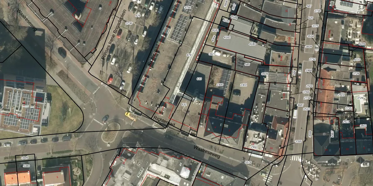 Het perceel waarop het adres ligt is VKW00-E-633. De afkorting 'VKW00' staat voor kadastrale gemeente Valkenswaard. De gemiddelde perceelgrootte in Valkenswaard is 2206,09 m². Dit perceel is kleiner: de perceeloppervlakte bedraagt 343 m². Het grootste perceel in de kadastrale gemeente is 1,90 km². Het kleinste perceel heeft een oppervlakte van 0 m². Op het perceel zijn 9 adressen aanwezig. De laatste wijziging in het de Basisregistratie Kadaster (BRK) was op 28-06-2007.