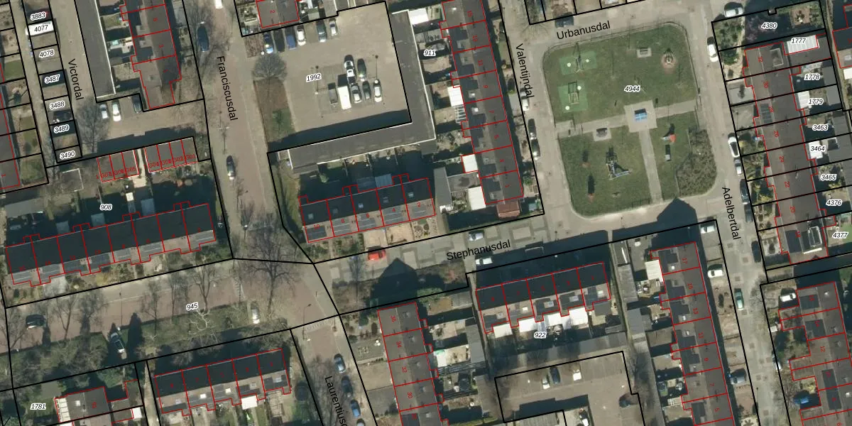 Het perceel waarop het adres ligt is VKW00-G-911. De afkorting 'VKW00' staat voor kadastrale gemeente Valkenswaard. De gemiddelde perceeloppervlakte in de kadastrale gemeente Valkenswaard is 2206,09 m². Dit perceel is met zijn 5479 m² dus groter dan gemiddeld. De grootste perceeloppervlakte in de kadastrale gemeente is 1,90 km². De kleinste oppervlakte bedraagt 0 m². Op het perceel zijn 31 adressen aanwezig. In de Basisregistratie Kadaster (BRK) werden de grenzen van het perceel geregistreerd op 09-09-2011.