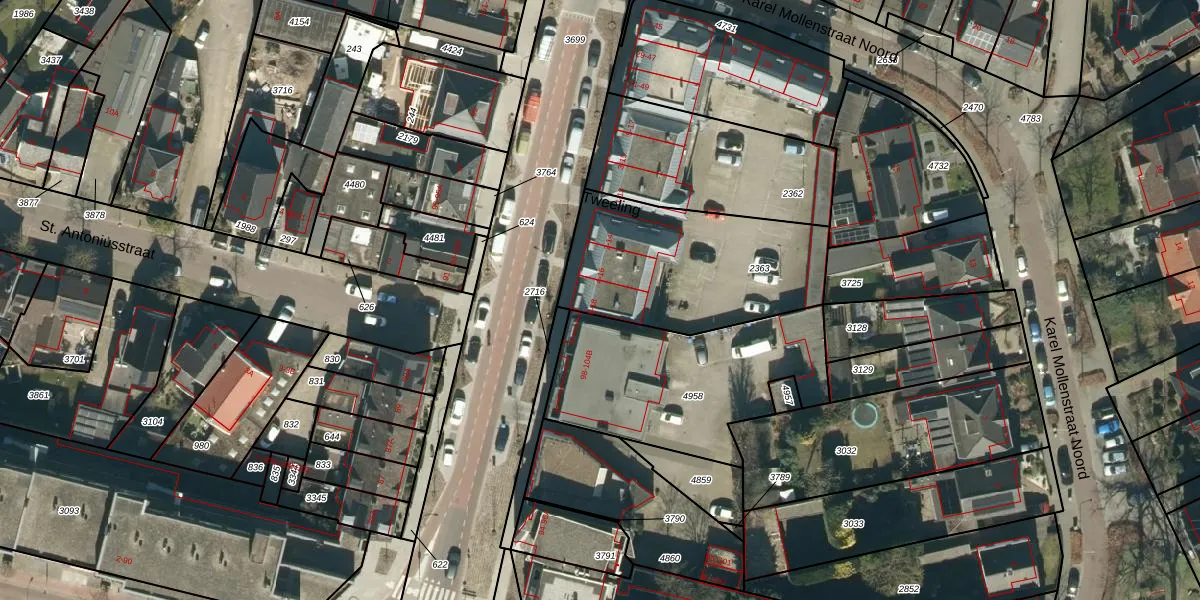 Het perceel waarop het adres ligt is VKW00-B-2363. De afkorting 'VKW00' staat voor kadastrale gemeente Valkenswaard. Het perceel is 798 m² groot. Dat is kleiner dan de gemiddelde perceeloppervlakte in Valkenswaard, dat op 2206,24 m² ligt. De grootste perceeloppervlakte in de kadastrale gemeente is 1,90 km². De kleinste oppervlakte bedraagt 0 m². Er zijn 9 adressen aanwezig op het perceel. De laatste wijziging in het de Basisregistratie Kadaster (BRK) was op 16-02-2009.