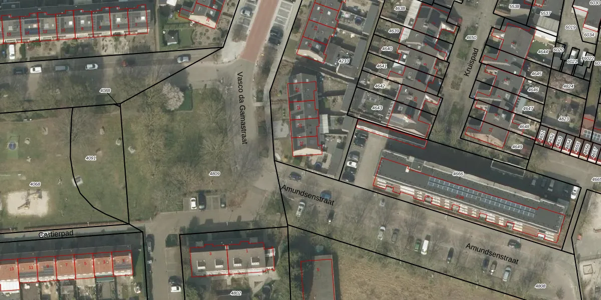 Het perceel waarop het adres ligt is VKW00-D-4233. De afkorting 'VKW00' staat voor kadastrale gemeente Valkenswaard. Het perceel is kleiner dan gemiddeld in Valkenswaard. Het perceel is 2005 m² groot, terwijl het gemiddelde ligt op 2204,16 m². Het kleinste perceel in de kadastrale gemeente is 0 m² groot. De grootste perceeloppervlakte is 1,90 km². Er zijn 10 adressen aanwezig op het perceel. De huidige grenzen van het perceel zijn digitaal in de Basisregistratie Kadaster (BRK) geregistreerd op 04-03-2005.