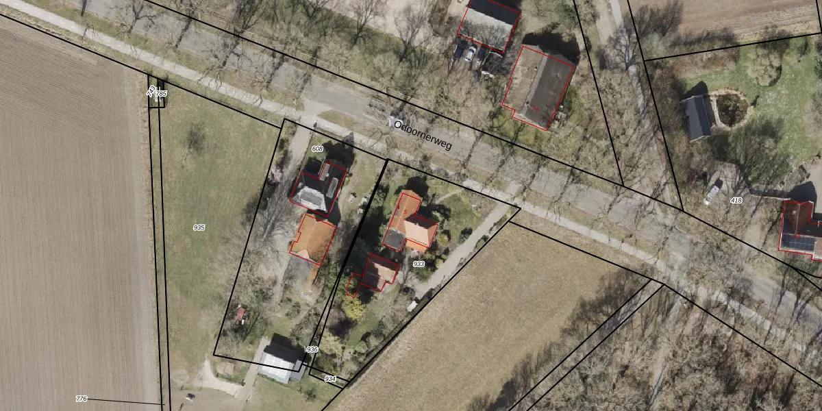 Odoornerweg 5 is gelegen op kadastraal perceel ODN00S933. Deze kadastrale aanduiding is uniek en wordt gebruikt door het Kadaster om eigendomsrechten en andere zakelijke rechten vast te leggen. Het perceel maakt onderdeel uit van de kadastrale gemeente Odoorn.