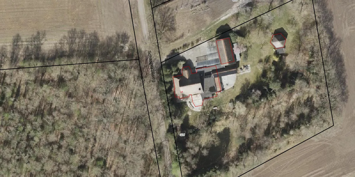 Schaapskuilweg 18 is gelegen op kadastraal perceel ODN00R324. Deze kadastrale aanduiding is uniek en wordt gebruikt door het Kadaster om eigendomsrechten en andere zakelijke rechten vast te leggen. Het perceel maakt onderdeel uit van de kadastrale gemeente Odoorn.