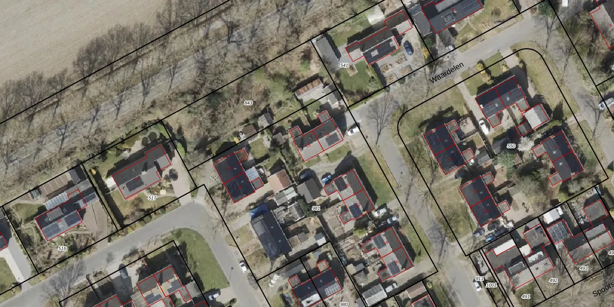 Het perceel waarop Waardelen 18 staat heeft een oppervlakte van 2925 m². Dit is een zeer groot perceel. De perceeloppervlakte wordt geregistreerd door het Kadaster. Gedetailleerde informatie over de maten van dit perceel kunt u vinden in het rapport Kadastrale kaart met maatvoering van Waardelen 18.