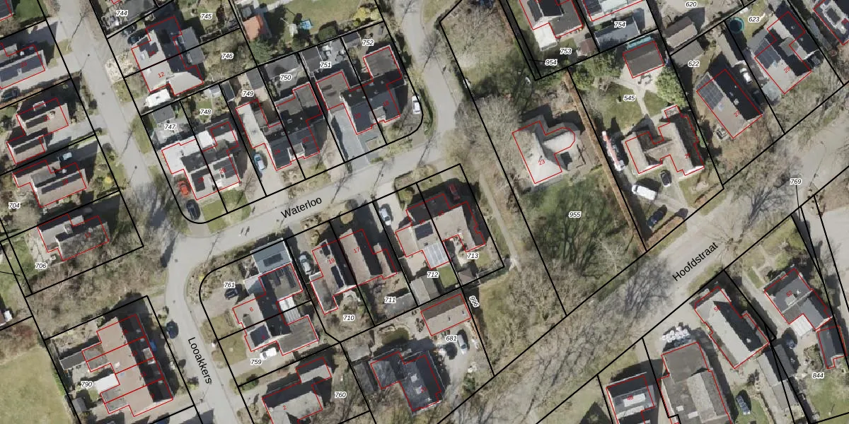 Het perceel waarop Waterloo 15 staat heeft een oppervlakte van 300 m². Dit is een groot perceel. De perceeloppervlakte wordt geregistreerd door het Kadaster. Gedetailleerde informatie over de maten van dit perceel kunt u vinden in het rapport Kadastrale kaart met maatvoering van Waterloo 15.