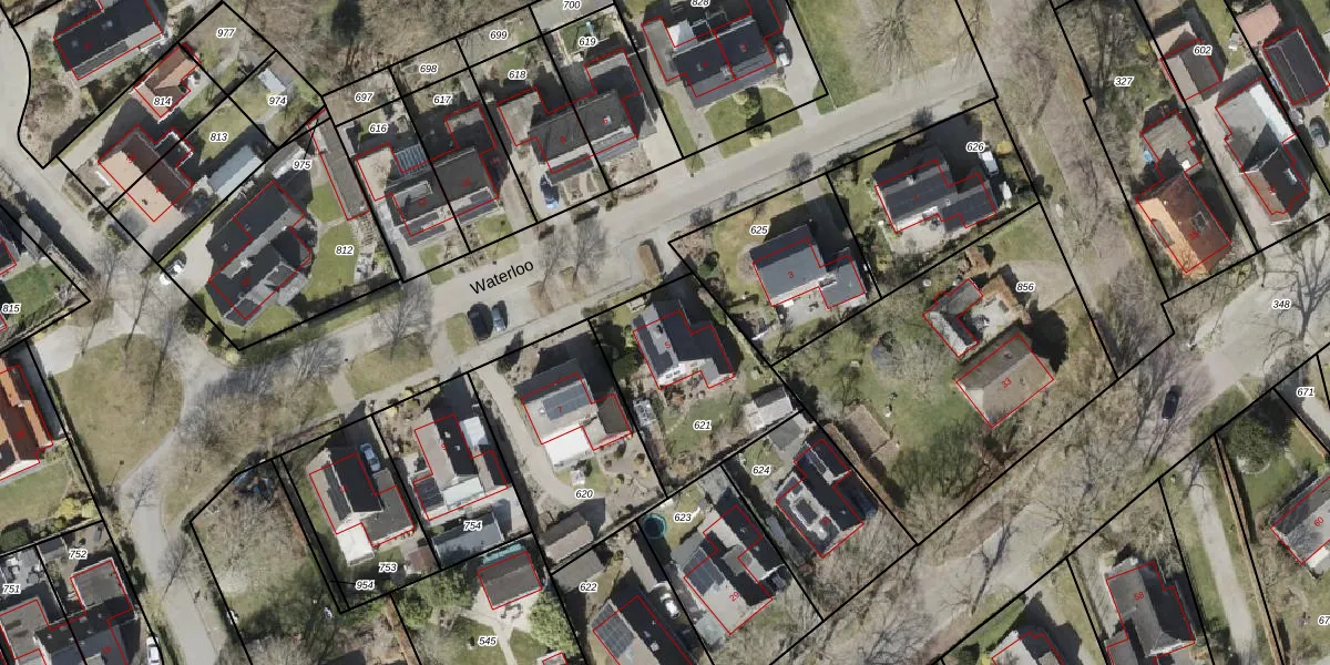 Het perceel waarop Waterloo 5 staat heeft een oppervlakte van 580 m². Dit is een groot perceel. De perceeloppervlakte wordt geregistreerd door het Kadaster. Gedetailleerde informatie over de maten van dit perceel kunt u vinden in het rapport Kadastrale kaart met maatvoering van Waterloo 5.