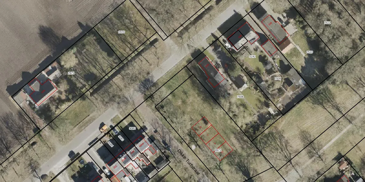 Dikke Turfstraat 1 is gelegen op kadastraal perceel ODN00E8971. Deze kadastrale aanduiding is uniek en wordt gebruikt door het Kadaster om eigendomsrechten en andere zakelijke rechten vast te leggen. Het perceel maakt onderdeel uit van de kadastrale gemeente Odoorn.