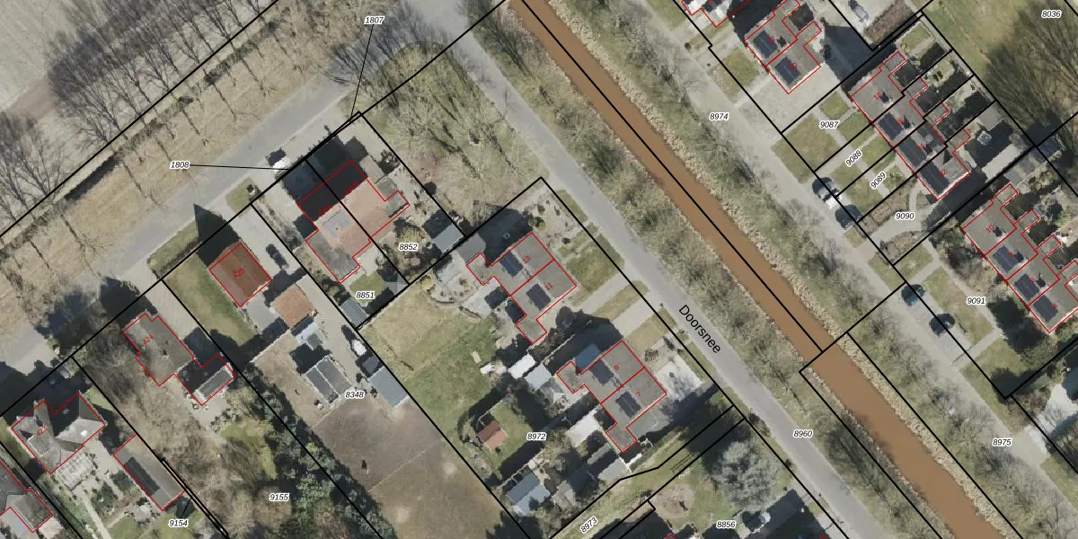 Het perceel waarop Doorsnee 13 staat heeft een oppervlakte van 2415 m². Dit is een zeer groot perceel. De perceeloppervlakte wordt geregistreerd door het Kadaster. Gedetailleerde informatie over de maten van dit perceel kunt u vinden in het rapport Kadastrale kaart met maatvoering van Doorsnee 13.
